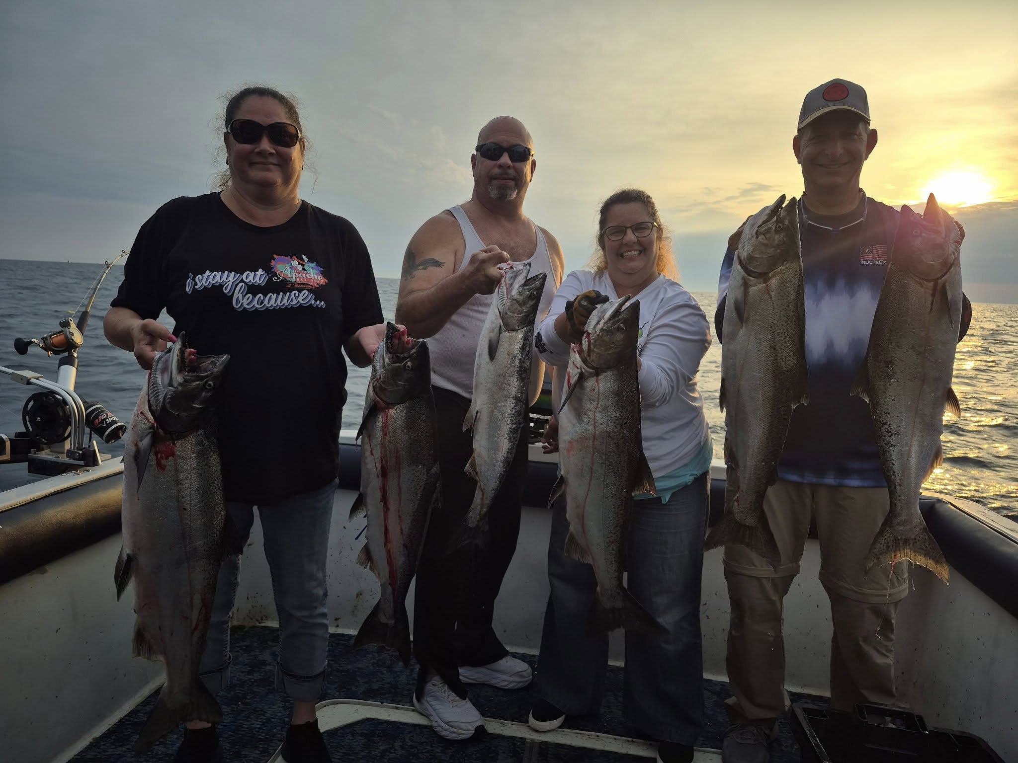 Dive into the action with the Angling Only Guide Service photo gallery! These images capture the excitement and scale of a real Lake Michigan fishing charter Sheboygan experience. Scroll through photos of massive King Salmon and gleaming Lake Trout, proving why Sheboygan is the destination for trophy fish. You'll see happy families and seasoned anglers proudly holding their catches aboard our specialized vessels, reflecting the high-quality, memorable trips Captain Jeremy Brenner provides. From stunning sunrises over the water to the moment the net slides under a big one, this gallery brings the sheer joy of our Salmon and Trout trips to life and is designed to inspire you to book your own date with us!